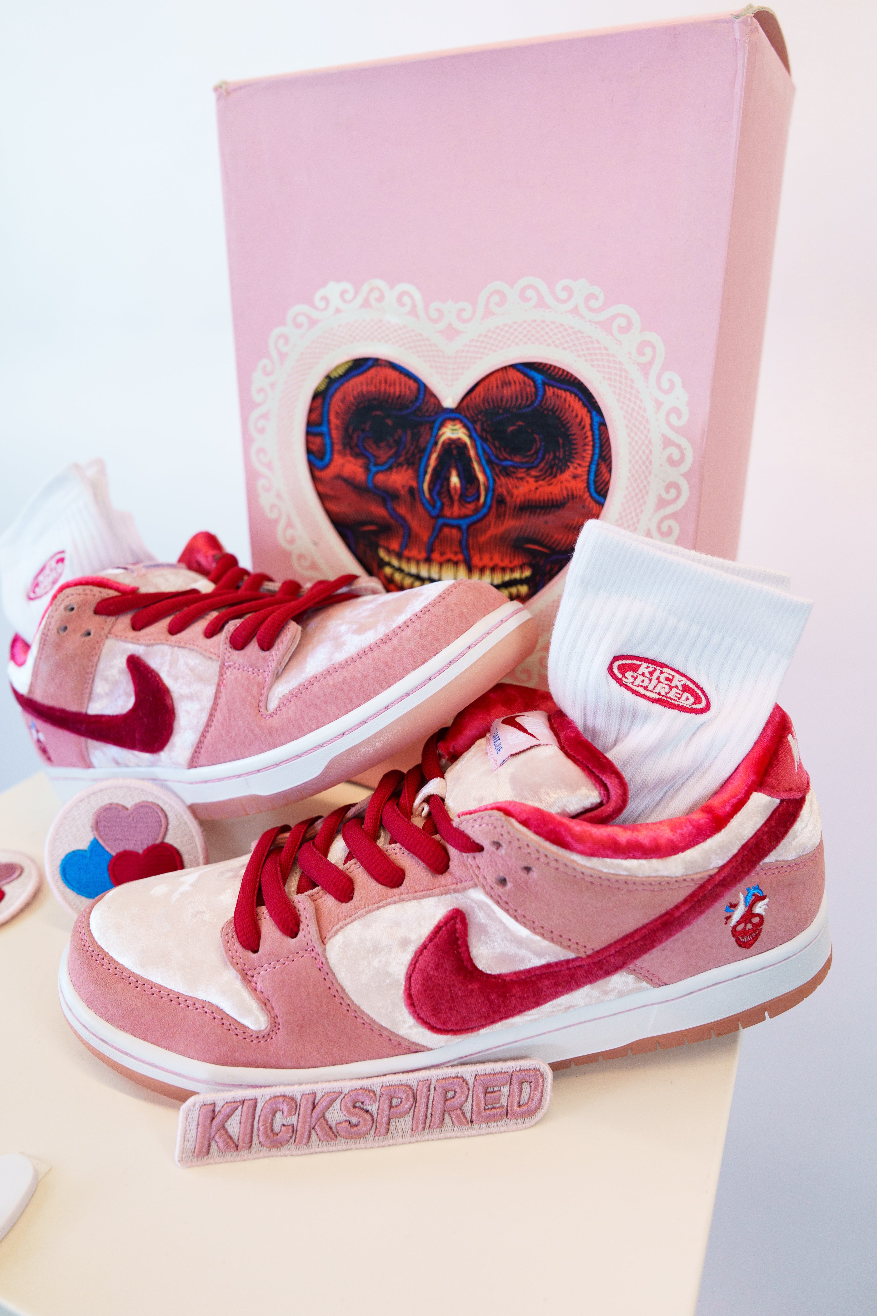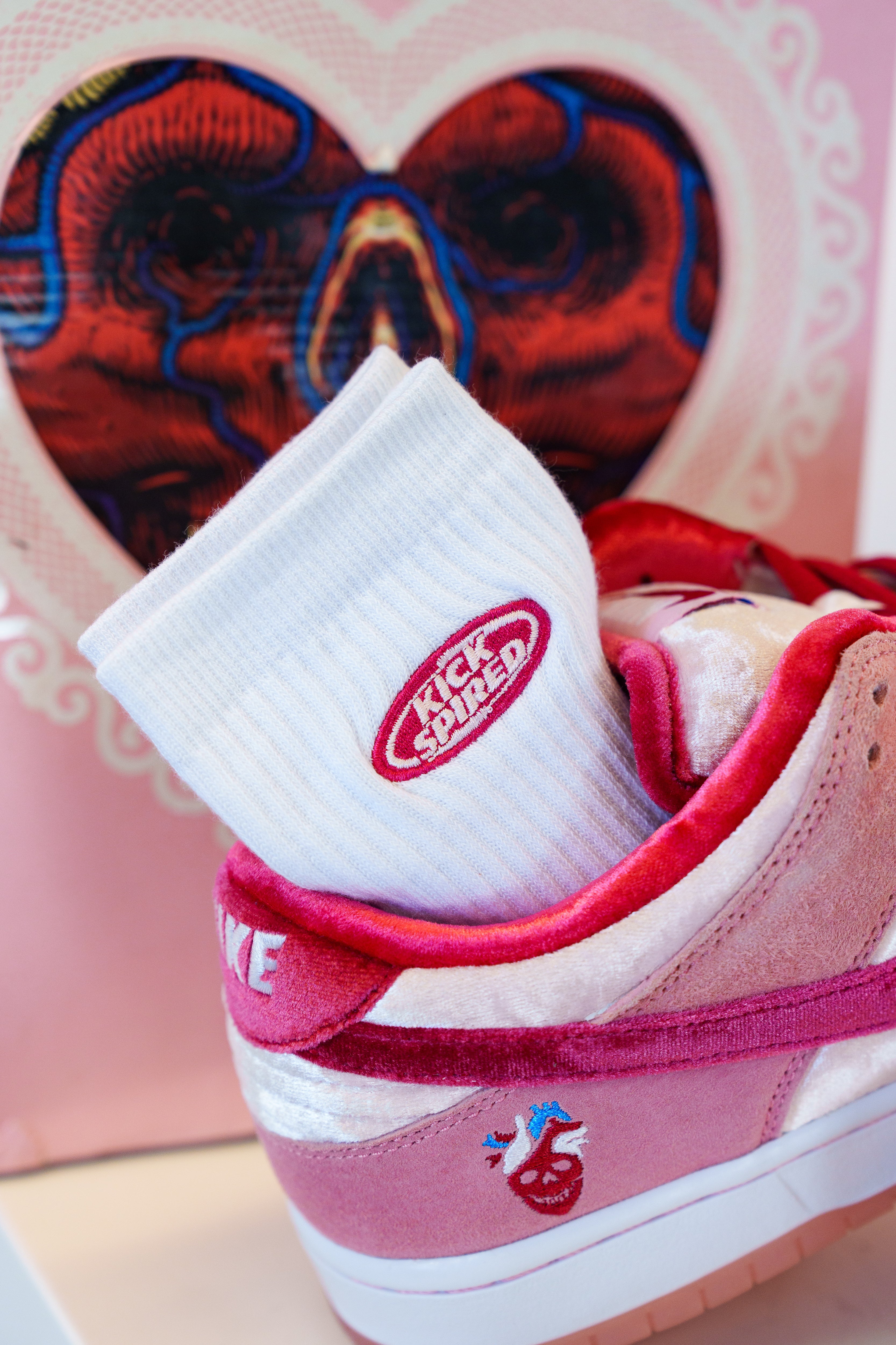 Inspired by the Nike SB dunk low Strangelove, our rose, pink and red velcro badges bring a vibrant pop of color and energy to your fashion rotation. Each badge is made from premium, durable materials and designed to perfectly match our heavyweight, high-quality and soft Kickspired apparel. Thanks to the innovative velcro system, you can swap designs in seconds to keep your look fresh and unique. Complete the fit with our matching rose pink and red socks for a coordinated style that ties together your outfit and your sneakers. For sneakerheads and fashion lovers, the rose, pink and red collection delivers bold, head-turning sneaker-inspired designs.